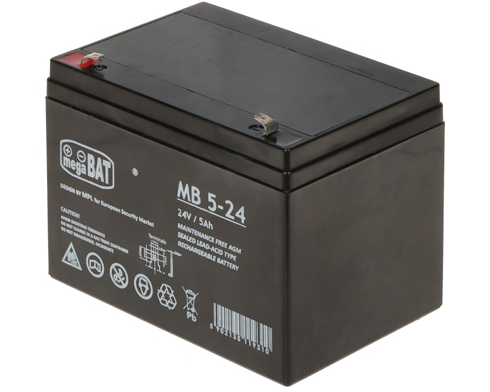 Baterie 24V 5Ah pentru alimentarea sistemelor de alimentare de urgență, UPS, sisteme de automatizare, instalații fotovoltaice sau convertoare de tensiune.