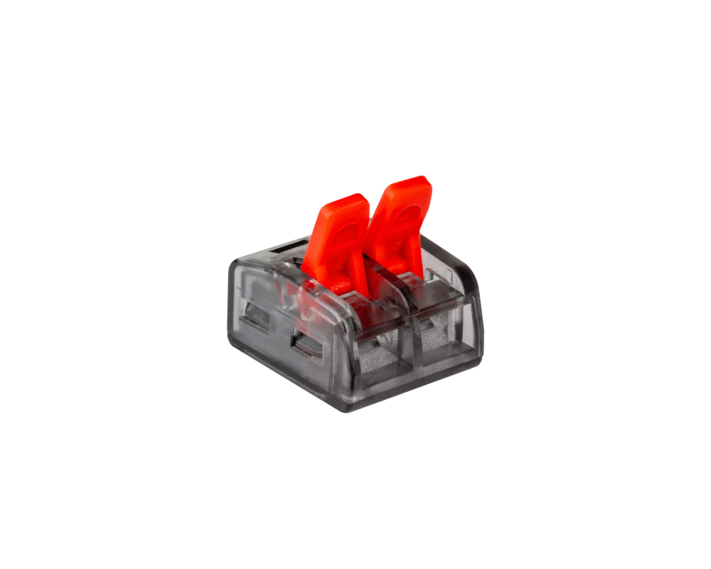 Conectorul rapid pentru instalații electrice 2 x 0,2 ÷ (2,5) 4,0 mm² este o alternativă la alte metode de conectare a cablurilor electrice, cum ar fi blocurile terminale pentru cabluri sau conexiunile tip bandă. Clienții îi aleg în principal pentru ușurința în utilizare. Acești conectori rapizi nu necesită șuruburi sau unelte. Pur și simplu introduceți firele în orificiu și fixați-le cu pârghiile de blocare.
