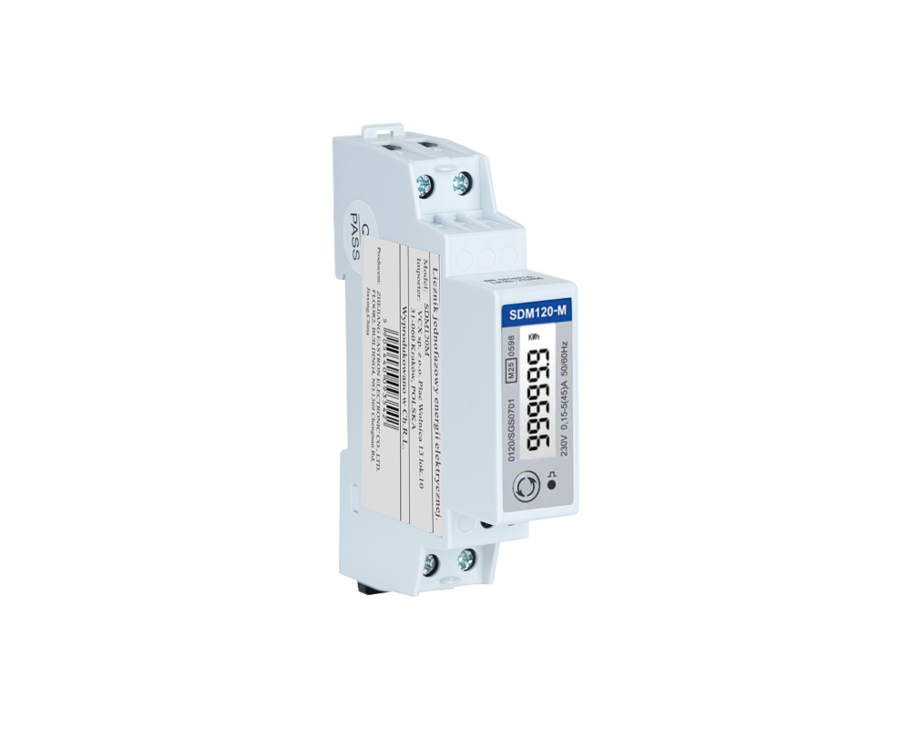 SDM120-M este un contor de energie monofazat, montat pe șină DIN, conceput pentru măsurarea directă a consumului de energie electrică și monitorizarea parametrilor cheie ai rețelei în instalațiile monofazate. Dispozitivul măsoară energia activă și reactivă, precum și parametri precum curentul, tensiunea, puterea, factorul de putere și frecvența.
