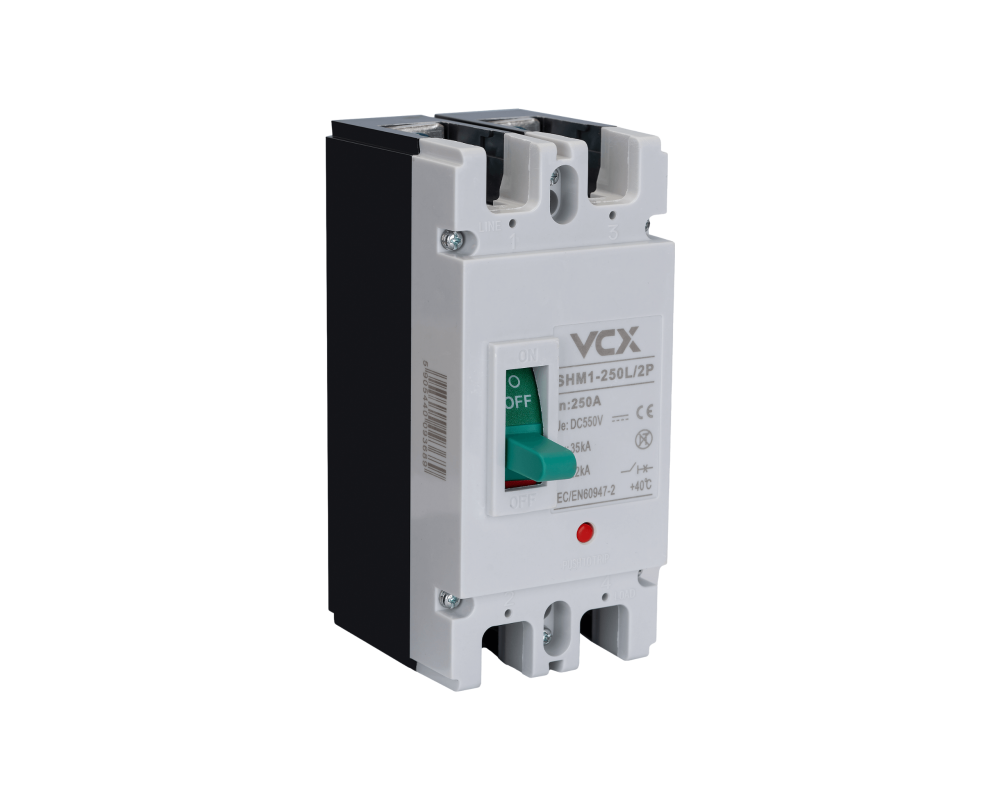Întrerupătorul de circuit fotovoltaic CC 2P 250A de 550V CC este un întrerupător de circuit MCCB bipolar conceput pentru a proteja instalațiile fotovoltaice , sistemele de stocare a energiei și alte circuite de curent continuu care necesită deconectare rapidă a alimentării și protecție împotriva suprasarcinii și scurtcircuitului.