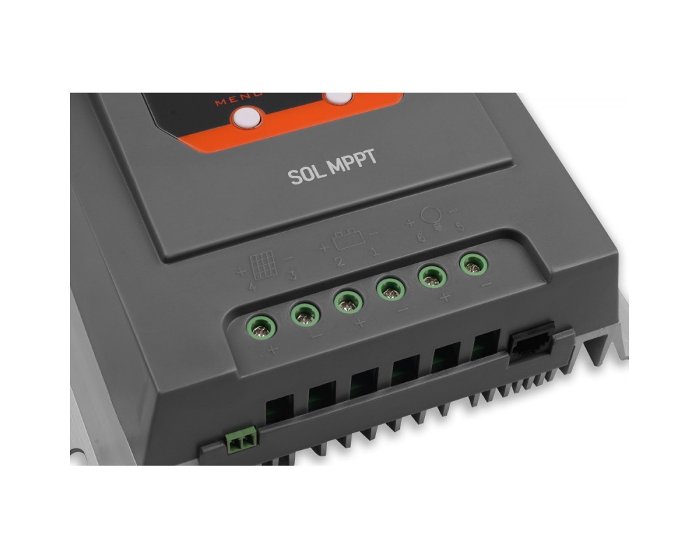 Regulatorul solar Regulatorul SOL MPPT 40A este conceput pentru a încărca bateriile dintr-un set conectat de panouri solare. Acest dispozitiv modern și multifuncțional efectuează încărcarea pe baza celei mai recente și mai eficiente tehnologii de încărcare MPPT.