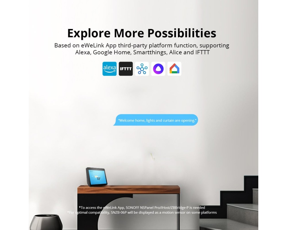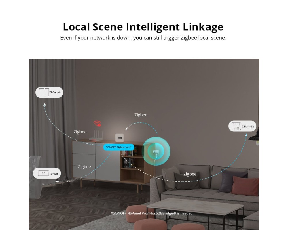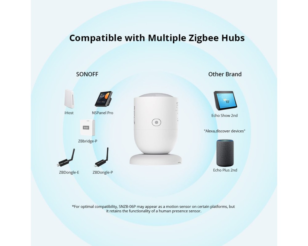 Suporta hub-uri Zigbee folosind protocolul Zigbee 3.0, cum ar fi SONOFF NSPanel Pro, SONOFF iHost, SONOFF ZB Bridge Pro, SONOFF ZBDongle-E si Echo Plus 2nd...