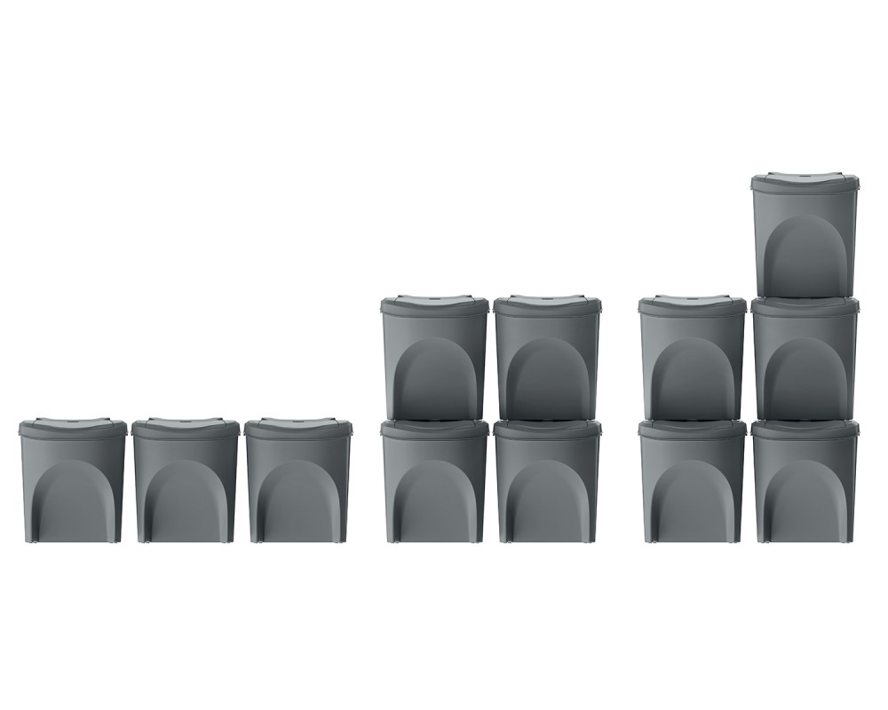 Set 4 cosuri pentru colectare selectiva SORTI BOX, Stone Gray, Prosperplast