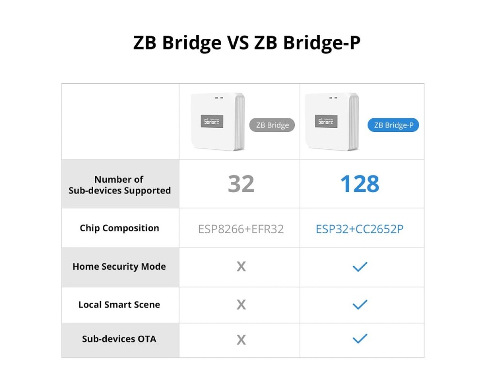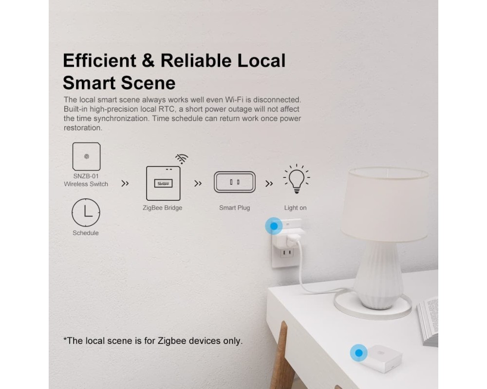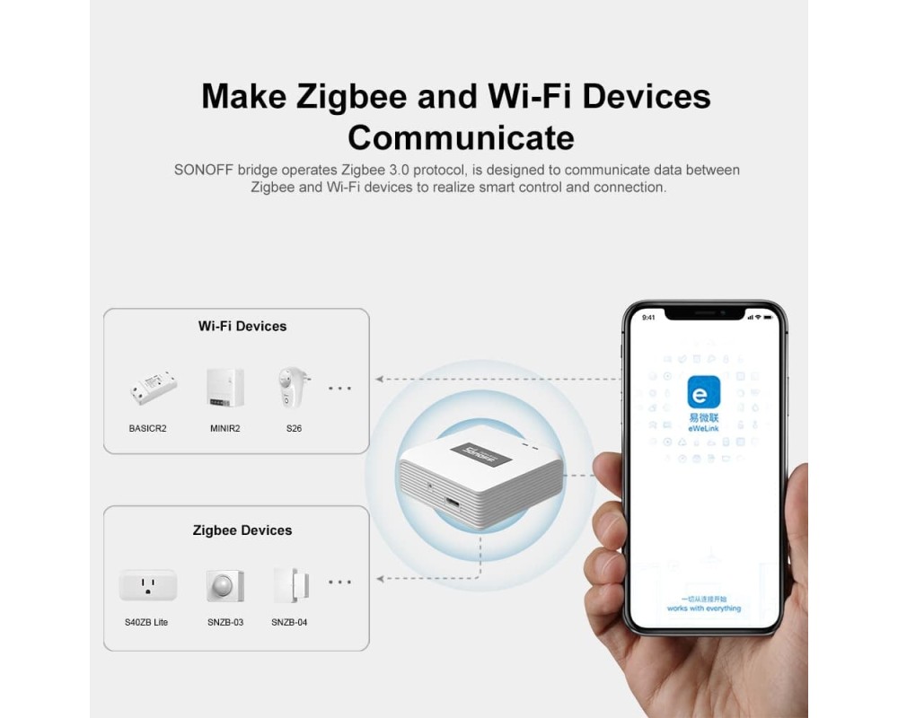 Conectivitate puternică, posibilitati nelimitate - ZB Bridge-P acceptă adăugarea de dispozitive ZigBee pe care SONOFF le-a lansat, cum ar fi comutatorul inteligent ZBMINI-L și priza inteligentă S26R2ZB, făcându-vă casa mai inteligentă.
