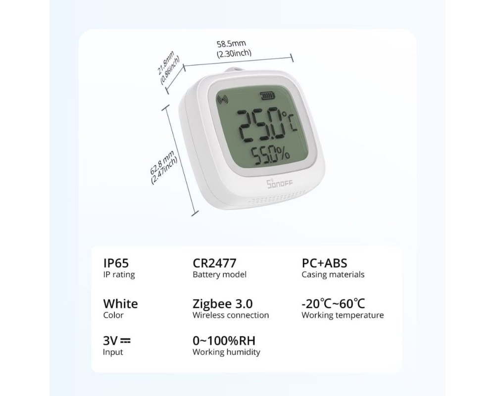 Senzor de temperatura si umiditate Sonoff SNZB-02WD, Zigbee 3.0 IP65