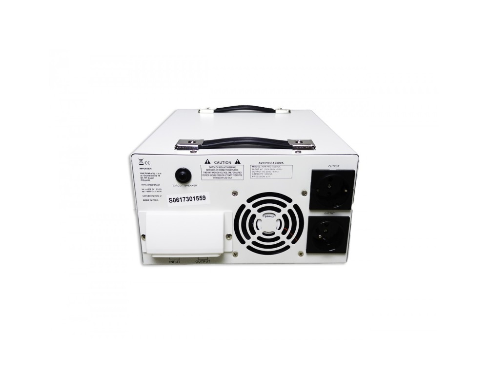 Stabilizatorul de tensiune de rețea AVR PRO 5000 combină caracteristicile a 2 dispozitive: un regulator de tensiune și un protector la supra-tensiune.