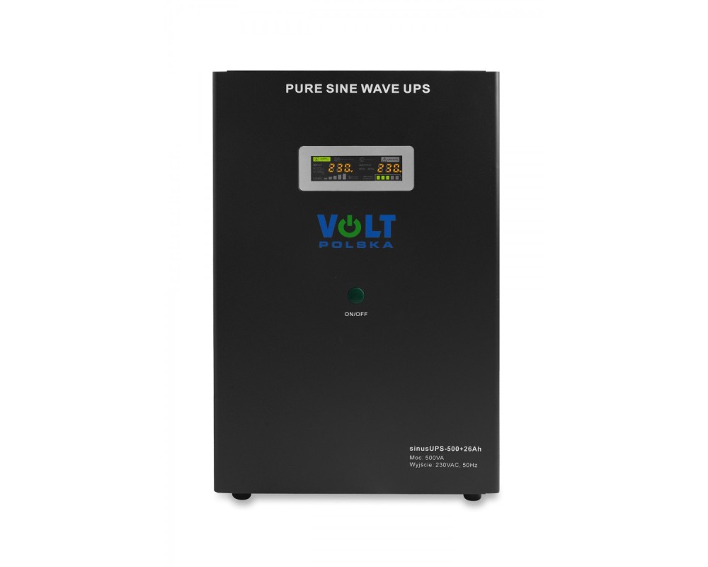 Sursa neîntreruptibilă VOLT SINUS UPS 500 cu acumulator AKU 26Ah inclus pentru alimentarea instalațiilor de încălzire centrală (centrale termice, pompe, controlere, alimentatoare etc.), calculatoare, servere sau porți automate.