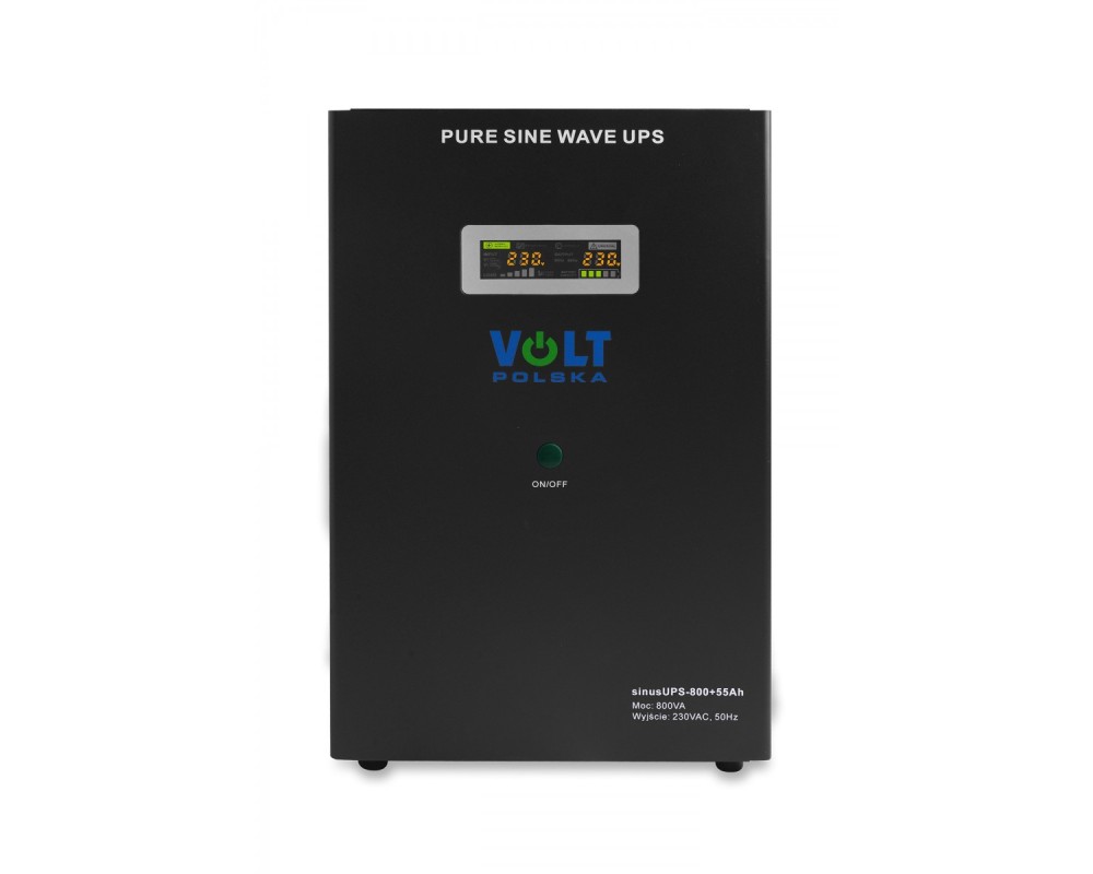 Sursă neîntreruptibilă VOLT SINUS UPS 800 cu acumulator AKU 55 Ah inclus, pentru alimentarea instalațiilor de încălzire cu centrală termică (pompe de încălzire centrală, controlere, alimentatoare etc.) sau calculatoare, servere, porți automate.